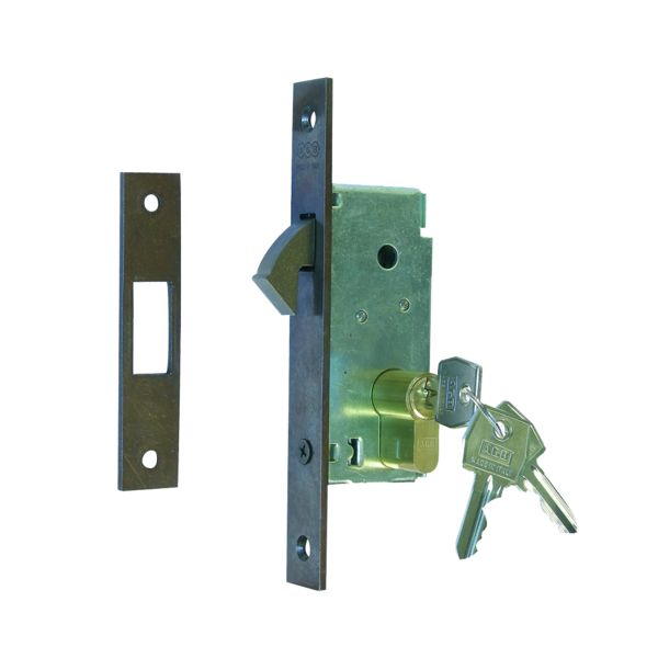 Serrure à crochet rentrant avec gâche et cylindre 3 clés