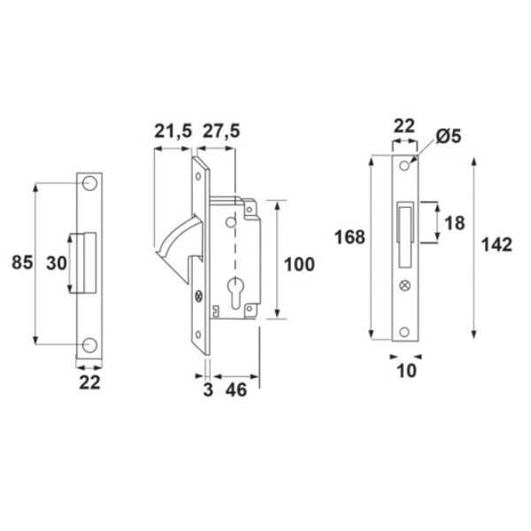 SERRURE A CROCHET RENTRANT