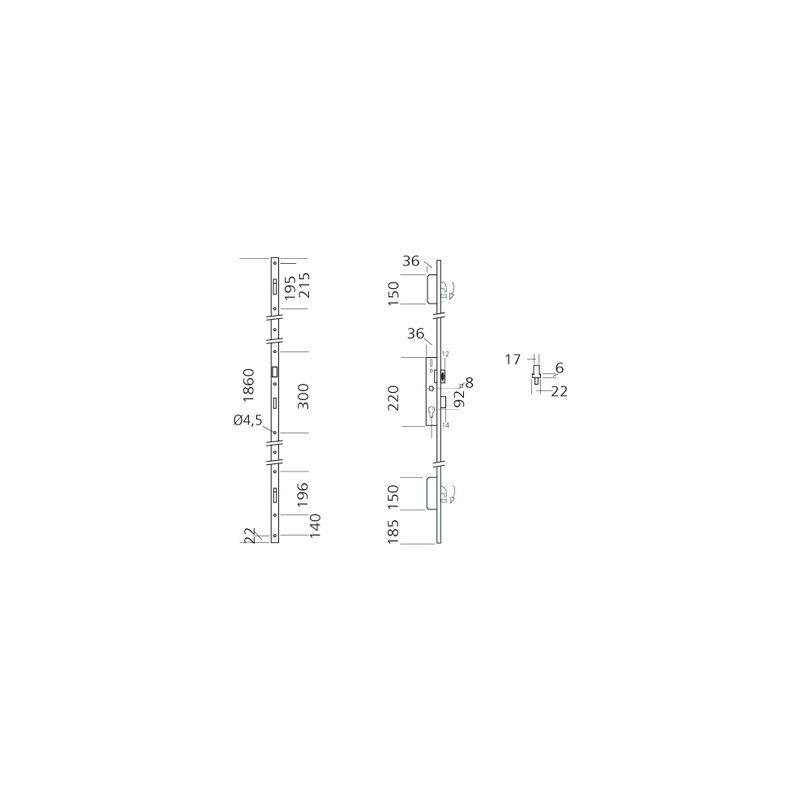 | Type points de fermeture auxiliaires | Pêne rond et crochet |