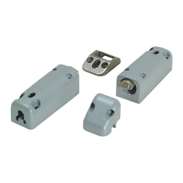 Gâche supérieure en zamak et gâche de sol en acier inox.