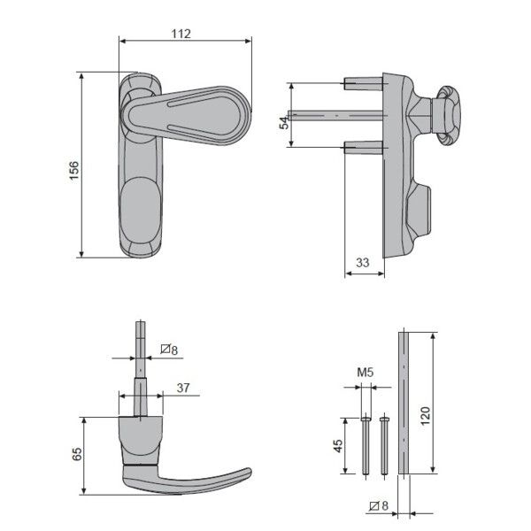 Corps et poignée en Zamak, mécanisme en acier, contre-plaque