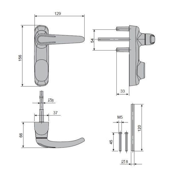 Corps et poignée en Zamak, mécanisme en acier, contre-plaque