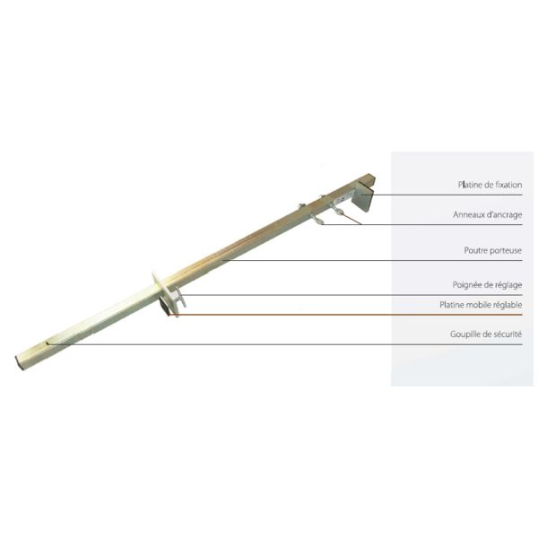 Barre d’ancrage transportable qui permet de créer un ou deux points d’ancrage dans les encadrements de portes ou fenêtres.