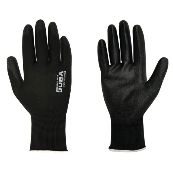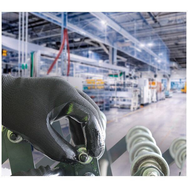 Gants en polyester sans coutures avec enduction nitrile étanche sur la paume.